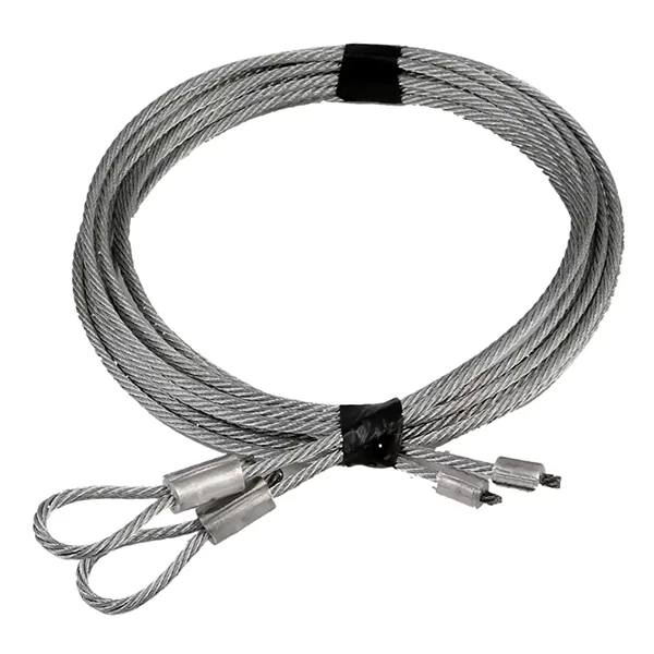 Professional grade 8-foot garage door cable pair designed for residential and commercial applications. Features high-strength galvanized steel wire construction with precision-formed loops for secure attachment. Essential component for proper garage door lifting system operation. Sold as a pair for complete door coverage.